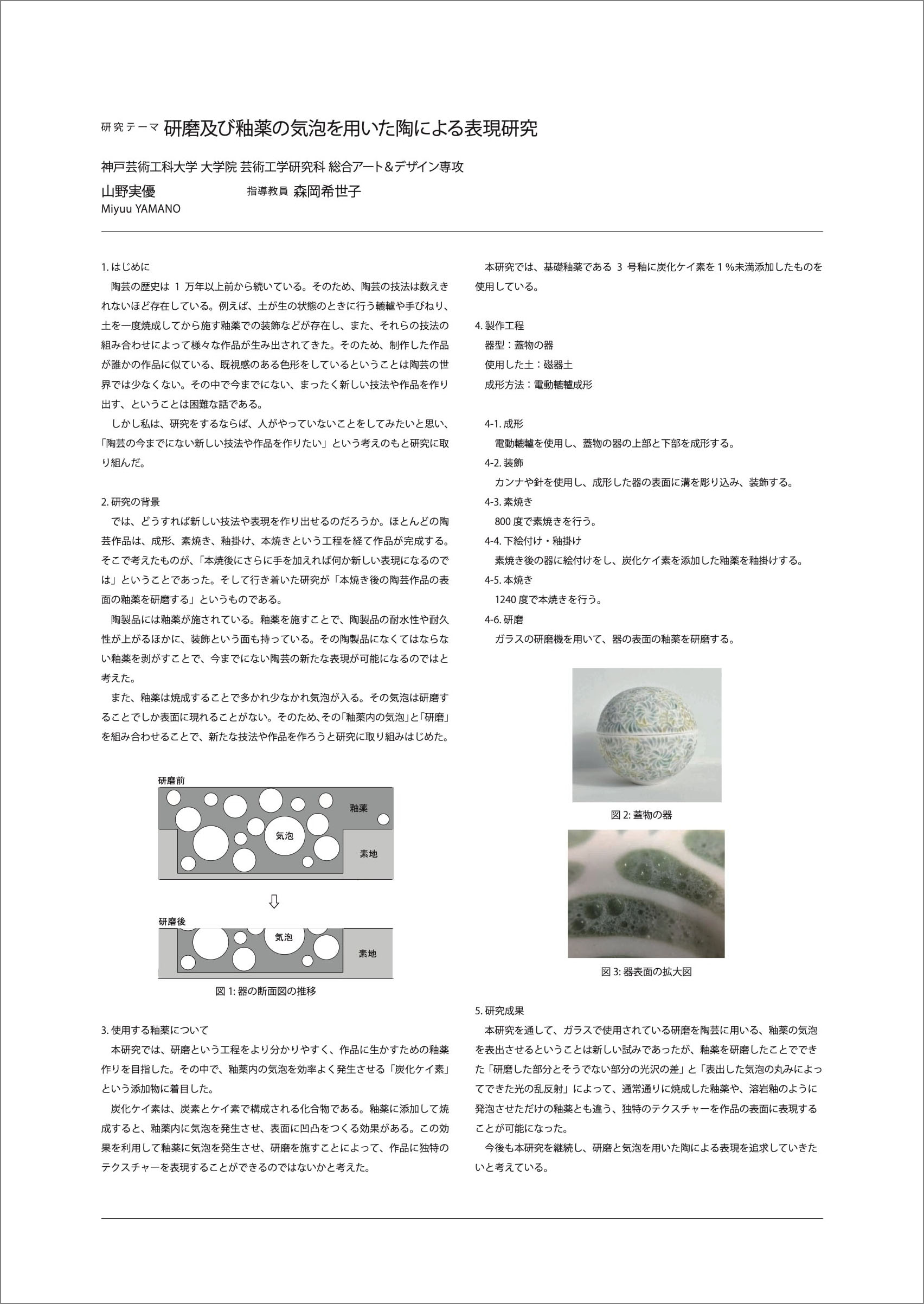 研磨及び釉薬の気泡を用いた陶による表現研究