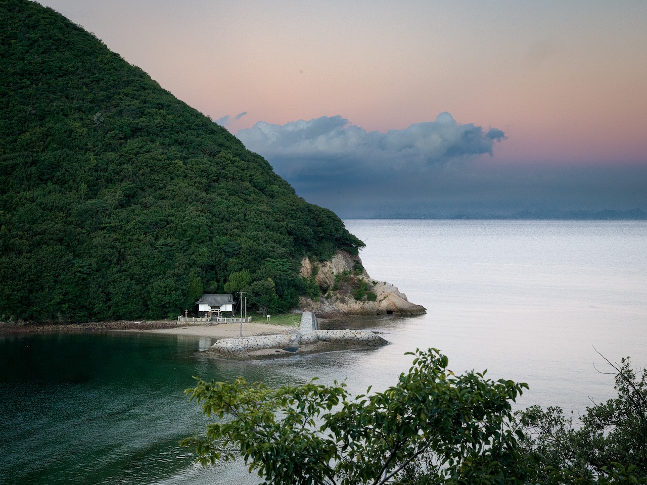 浦島太郎が亀を助けた場所と言われる丸山島を望む地において