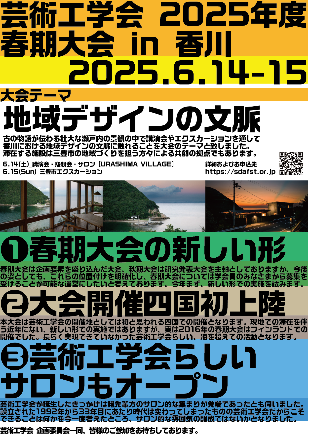 つきましては、現地で参加いただく方についての募集を以下の日程で実施させて頂きます。古の物語が伝わる壮大な瀬戸内の景観の中で、デザインサロン的な雰囲気をお楽しみ頂ければ幸いです。(企画委員会 一同)